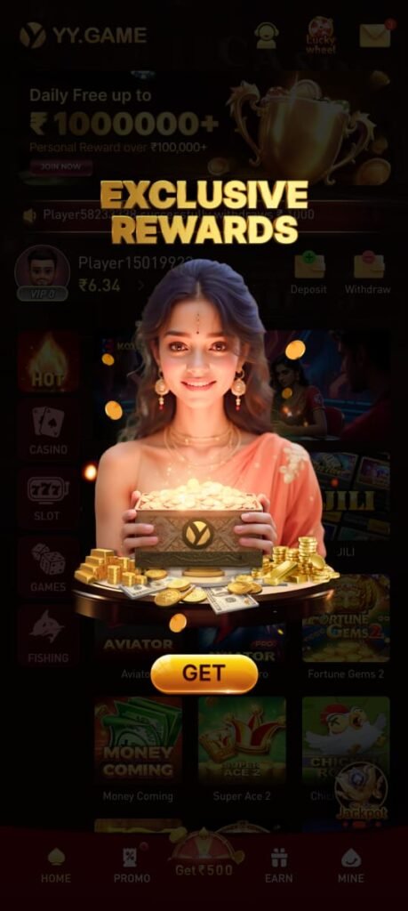 One of the most attractive features of YY Game APK (YYGAMES.GAMES APK Downlaod)is the Spin & Win cash bonus. After signing up, players can spin the reward wheel and get up to ₹500 in their wallet. This makes the app more exciting because you start earning right from day one without even making a deposit.